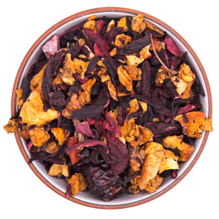 Каркаде, яблоко кусочки, ягоды вишни, смородины лист, натуральный ароматизатор